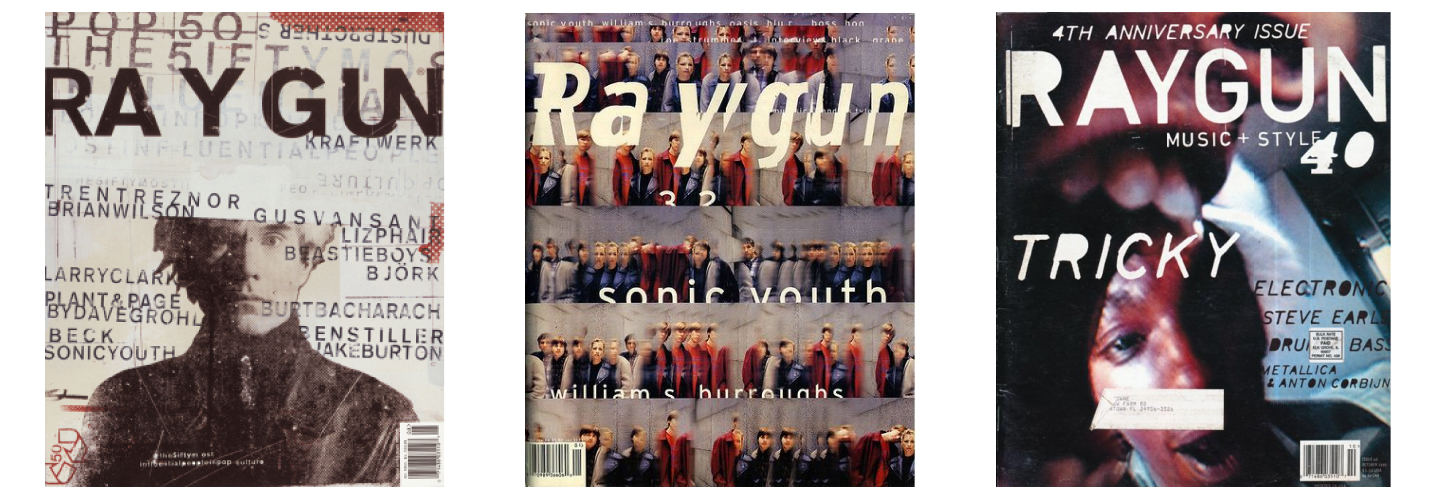 Anti-design is a style that initially began in the 1960s before re-emerging as an iconic 90s trend with alt music and zine aesthetics. It’s rebellious and deliberately plays with ugliness. Grids break, fonts mismatch, images are broken up, and colors clash. It looks pieced together and unfinished, projecting a careless-but-cool vibe.